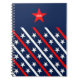 Patriotic, red, white and blue notebook. Diagonal stripes and stars. Personalise it with your initials.