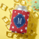 Cute trendy monogrammed can or bottle cooler with a patriotic red white and blue star pattern. Personalise it with a custom monogram or other text in a chic quatrefoil frame. Click Customise It to change text and fonts to create a unique one of a kind gift for your bridesmaids and wedding party! Contact me before ordering to customise patterns or design to coordinate with any wedding colours.