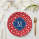 Red White and Blue Patriotic Stars Monogram Paper Plate