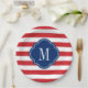Red White and Blue Patriotic Stripes Monogram Paper Plate