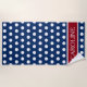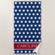 This fun beach towel features classic white polka dots on Navy Blue with a red and white band that your can personalise with your choice of name or special text. Makes great party favours for your next beach or pool party!