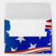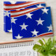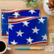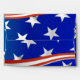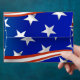 A modern patriotic American design, ideal for celebrating US holidays such as Fourth of July, or just to show your love and patriotism for the USA. The design features red and white wavy stripes on a background pattern of white stripes on a blue background to represent the American flag.