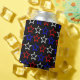 This patriotic design features a pattern of red, white, and blue stars on a black background.