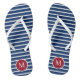 These fun monogram flip-flops feature classic white stripes on Navy Blue with a red and white monogram that your can personalise with your choice of initials.