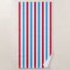 Red, white and blue vertical thin striped beach towel. Patriotic U.S.A. flag colours in a classic modern retro look ready for summer fun!