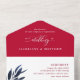 Celebrate your special day in style with this sophisticated, eco-friendly All-in-One Wedding Invitation. Crafted in a stunning three-tone palette of red, white, and blue, this invitation offers a rich, modern aesthetic that captures the essence of elegance and simplicity. Each section is thoughtfully designed in a different rich tone, creating a seamless and beautiful flow from the invitation to the RSVP. Delicate faux silver and blue foil leaves add a touch of refinement, showcasing your wedding details with understated elegance. This invitation is designed for the modern couple who values both beauty and practicality, offering everything you need in one sleek, easy-to-mail piece. With no need for extra insert cards, RSVP cards, or envelopes, this is the ultimate in minimalist luxury—environmentally friendly and convenient. Includes wedding ceremony and reception details, as well as a perforated RSVP postcard ready for guests to fill out and return. Option to add guest names on the back for a fully addressed invitation ready to mail. (Alternatively, erase the name and address to use traditional envelopes.) This modern, minimalist invitation combines functionality with beauty—an ideal choice for the eco-conscious, stylish couple looking to make a statement while keeping things simple and sustainable. Perfect for Red, White, and Blue Weddings: Ideal for patriotic themes or couples who love a sophisticated, bold colour palette. Coordinating save the date is also available at Zazzle.