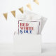 Modern and minimalist "Red, White and Due" baby shower theme featuring 4th July patriotic American flag colours with bold typography.