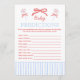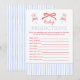 Looking for a summery baby shower game to match your red, white, and due baby shower? Consider one of our red, white, and blue games. This Americana-inspired baby shower game features a coquette red bow with preppy stripes that give all of the summer vibes.