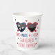 These cute and girly Americana Red White and I Do paper cups are perfect for the celebrating the bride to be in July. Let's celebrate the stars, stripes and hearts. Perfect for a summer, outdoor or pool bridal shower party. Cute 4th of July themed bridal shower paper party decor with cute and cool patriotic heart shaped sunglasses. American, vintage and adorable. Love the USA and the bride. Personalise it with the event name. Artwork © Chrissy H. studios, LLC. All rights reserved.