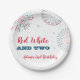 This gender neutral birthday paper plates is perfect for a Fourth of July party. This Red, White and Two design features colorful fireworks and fun type.