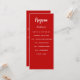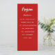 Program and menu card. Personalise and add your name, date and the menu. Red background, white text.
