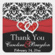 Red White Black Damask, Hearts 1.5" Sq. Sticker