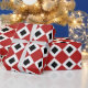 A classic pattern of interlocking red and white diamond shapes. Each white diamond contains a small black diamond adding depth to the original design.