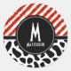 Red White Black Pattern Monogram Custom Classic Round Sticker