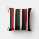 RED, WHITE and BLACK STRIPES, Throw Pillow- A crisp striped pillow in colours of red, white, black and grey. The front side of the pillow is the thick coloured stripes. The back side of the pillow is solid black.