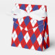 Red, White and Blue Argyle, 1-PARTY FAVOR BOX, tent style-An allover diamond shaped pattern created in patriotic red, white and blue colours. The diamond shapes alternate in all three colours. The digital stitching is blue. This design is suitable for certain holidays as well as many other occasions through out the year. The pattern coordinates with others in a complete red, white and blue party theme. You can find argyles, chevrons and even homespuns to coordinate, mix or match. Choose any size or quantity of Zazzle party favour boxes.