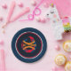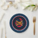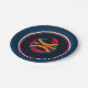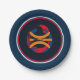 Deep Blue rims circle the plate with a Deepest Blue background and a modern art basketball graphic/logo. Seven inches in size and made of paper. Customise or buy as is.
