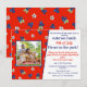 A fun summer red, white, and blue Fourth of July picnic personalised invitation. Featuring hand drawn watercolor blueberries and flowers on a bold red background. Find more kitschy summer blueberry picnic party supplies in my store. Original art by Leslie Larson.