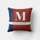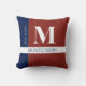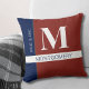 Decorative monogram pillow to match your home decor with custom name, surname and monogram in red, white and blue.