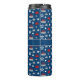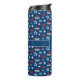 Thermal tumbler featuring a stars and curling rocks pattern in red, white and grey on blue background. Perfect for curlers and curling fans. Customise with your initial.