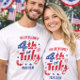 Red White Blue Fireworks 4th of July Family Crew T-Shirt