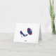 Stylish football theme wedding thank you note card, done in red, white, and blue. Graphics of a blue high heel kicking a red, white, and blue football decorates the front of the card, with a bold red and blue stripe, on the bottom. White text reads Thank you. Blue text inside the card is ready to personalise.