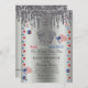 Glitter Drip Silver Patriotic Baby Feet Baby Shower Invitation