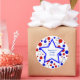 These personalised vinyl stickers are bursting with red, white and blue polka dots. In the centre, a blue star reads, "Property of Yankee Doodle."