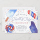 Invites friends, family and neighbours to your Fourth of July celebration with these festive invitations in a classic red, white, and blue colour palette. Cute whimsical design features watercolor ice pops and candy confections on a background of fireworks with your Independence Day event details in the centre. Customise with your event type, making this versatile invitation perfect for your annual July 4th barbecue, BBQ, cookout, block party or celebration.