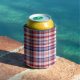 Red, White, Blue Preppy Madras Plaid Can Cooler