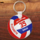 This sporty volleyball themed keychain for girls or boys features a realistic looking red, white and blue volleyball upon which you can customise the player's name & jersey number plus school or club name and mascot name in a varsity letter style font - by katz_d_zynes