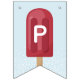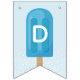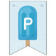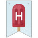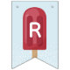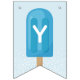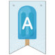 Designed to match our popsicle birthday party invitations, this cute summer bunting flag design features sixteen custom text fields to spell out your message (shown with "Happy Birthday"), with white lettering set on red and blue popsicles. A light blue background dotted with white confetti completes the design.