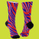 Step up your sock game with these **Red, White & Bold Tiger Stripe Crew Socks**—a wild splash of patriotism and power. The fierce **blue tiger stripes** with **white edges** on a **bright red background** bring energy and attitude to every step.