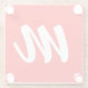Red White Calligraphy Monogram Initial Letter Glass Coaster