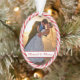 A traditional red and white candy cane stripe pattern makes a pretty frame for your photograph on the front of this oval Christmas ornament. Across your photo at the bottom is a white banner with your custom text in matching red. The back of the ornament has the same frame, with more custom text fields for your own message. * Please note - the candy cane frame is printed, and is not a raised edge frame; just artistically made to look like it is!
