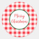 Red White Check MERRY CHRISTMAS Classic Round Sticker