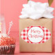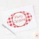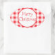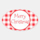 Red White Check Whimsical MERRY CHRISTMAS Oval Sticker