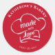 Use this sticker for all your home baked goodies or jams this holiday season or your business packaging. The sticker has a chef's hat with a red background and the words made with love. Add your business or personal name for a custom gift for anytime of the year.