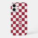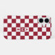 Cool iPhone case features a bold red and white chequered pattern with a customisable monogram. Add (or delete) 3 initials or numbers in the sidebar to personalise it. The geometric chequerboard pattern is made of rows of alternating white and dark red squares. Other case styles and models also available in the sidebar.