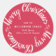 Merry Christmas is written in a large ornate white script and used as a frame or wreath to surround your family name and first names. Your family name is written in a white block text. Your first names are written in a smaller white script font. Beautiful way to seal your Christmas card envelope.