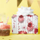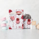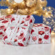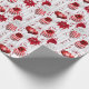 Red and white Christmas ornaments and roses holiday wrapping paper.