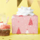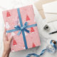 Red & White Christmas Trees On A Pink Background Wrapping Paper