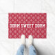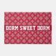 Our dorm door mat adorned with a red and white pattern and your text in school type lettering. View our full line of custom home products in our Zazzle store.