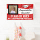 Red and white high school or college colours. Big giant yard sign or indoor/outdoor banner, Congratulations to the graduate of the class of (your year). Customise this personalised yard banner sign with your graduate's photo, name, year and school or other custom text. Personalised outdoor or indoor graduation party sign banner with your graduate's year, name, high school. Spectacular way to congratulate the graduate and welcome family and guests to your graduation party .