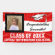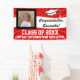Vibrant red and white high school or college colours. Big giant yard sign or indoor/outdoor banner, Congratulations to the graduate of the class of (your year). Customise this personalised yard banner sign with your graduate's photo, name, year and school or other custom text. Personalised outdoor or indoor graduation party sign banner with your graduate's year, name, high school. Spectacular way to congratulate the graduate and welcome family and guests to your graduation party .