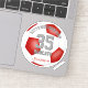 This team colours soccer sticker for boys or girls features the realistic image of a soccer ball that has red and white panels - customise the player's name, jersey number, team name and mascot name - by katz_d_zynes