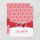 This red and white damask rsvp card with a red PRINTED ON ribbon and glittery joined diamond hearts brooch matches the wedding invitation shown below. If you require any other matching items, or would like it in another colour combination, please email niteowlstudio@gmail.com with your request.