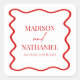 Red White Elegant Wavy Border Wedding Square Sticker