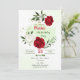 romantic red and white flowers and green leaves botanical birthday party invitation