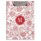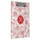 Stylish and cute Red and White Floral Monogram Clipboard. Great for moms, teachers, wedding planners and more.